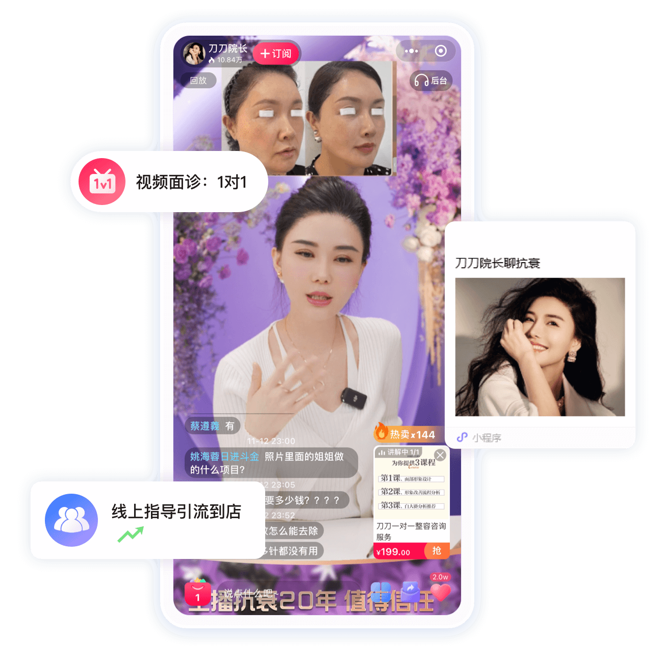 - 定制化菜单、个性化直播间主题设计、全方位塑造高端品牌形象。
