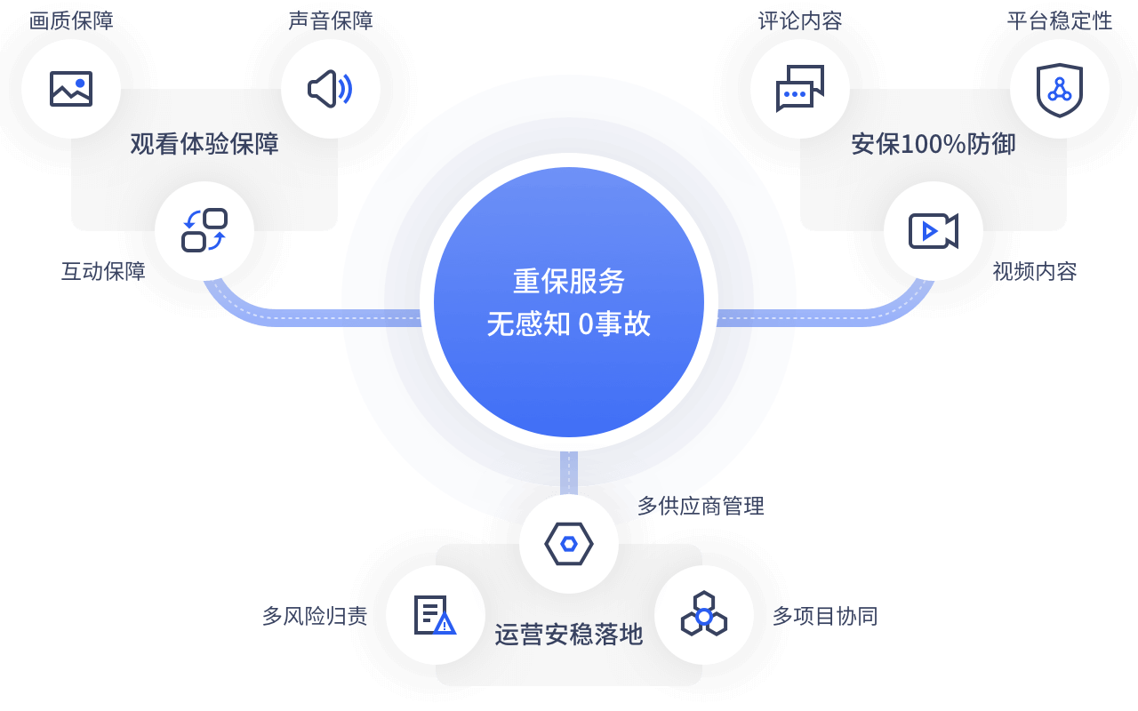 稳定保障、安全保障及经验保障,确保线上峰会顺利进行并保持安全畅通。选用高可靠的直播平台作为大会稳定基础保障。
